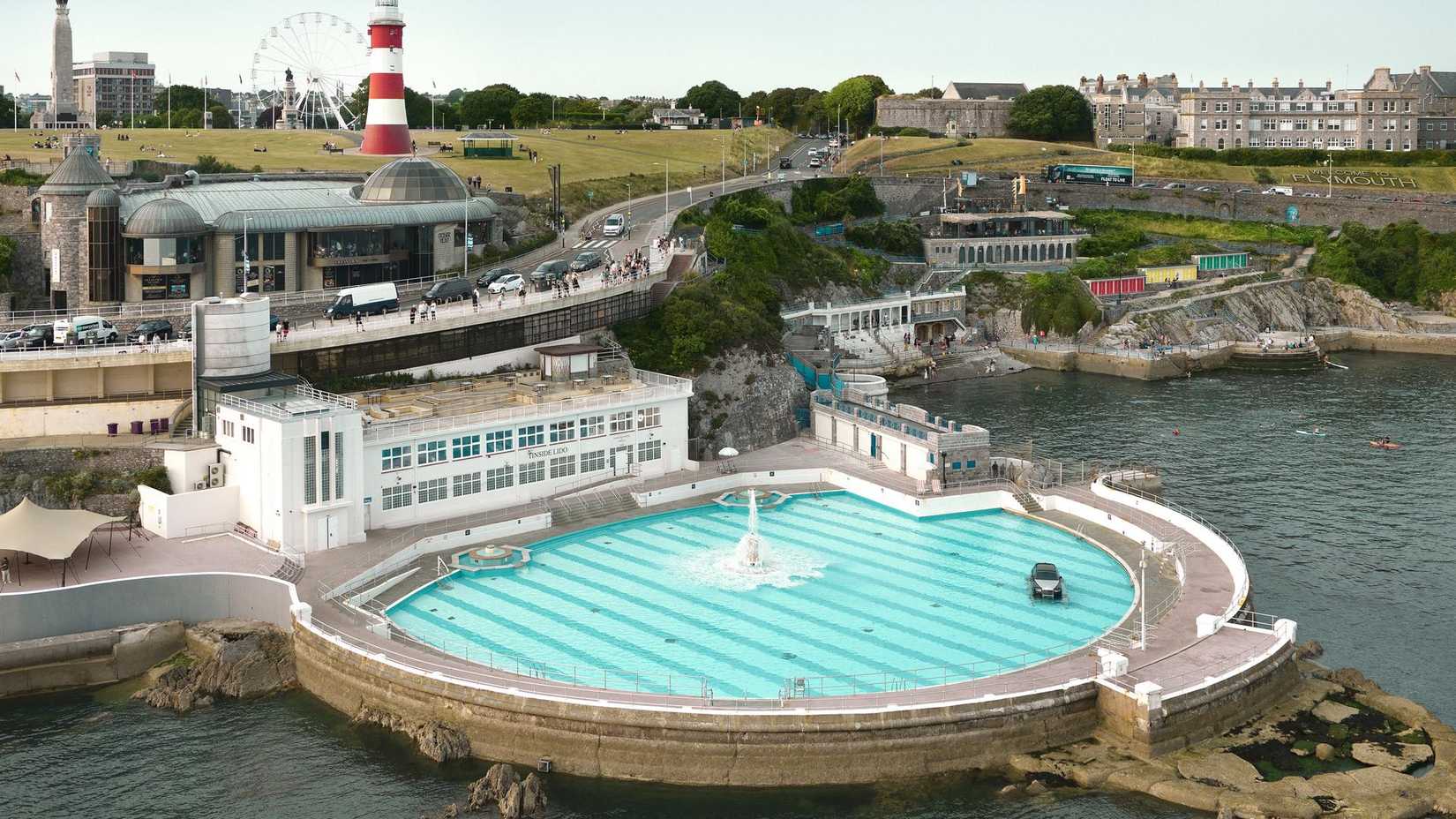 Even the pool it picked was posh. The Tinside Lido is so fancy that 1) it has a name and 2) they call it a lido instead of just a swimming pool. The pool opened in 1935, and has loads of Art Deco style. It's on the ocean in the seaside town of Plymouth, in the less-fancy-sounding neighborhood of Plymouth Hoe.