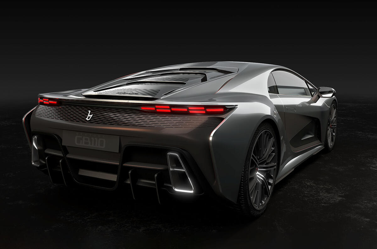 The GB110 will reach 62mph in 2.79sec, 124mph in 6.79sec and go on to an alleged top speed of 236mph, making it slightly slower than the 261mph Bugatti Chiron. It sends power to all four wheels through a seven-speed gearbox.