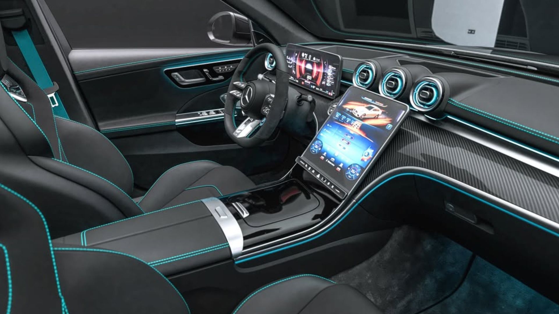 Mais qui dit cumul dit hybridation rechargeable, technologie indispensable pour échapper au malus. AMG n’y est pas allé avec le dos de la cuillère, en effet sous le capot de la Classe C, c’est le petit quatre cylindres 2.0 litres turbo de 476 ch chipé à la Classe A 45 qui office associé à un électromoteur. Une mécanique manquant de noblesse mais aussi de sonorité qui déplait à la clientèle. C’est pourquoi un préparateur autrichien a trouvé la parade en greffant un moteur bien plus à propos.