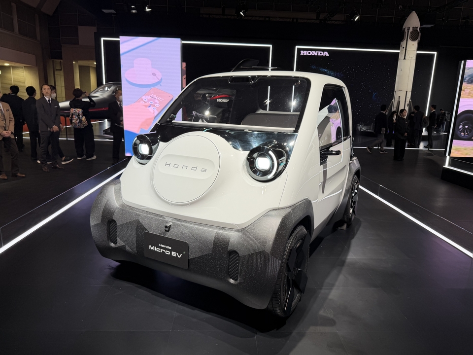 Outre des motos, des engins de mobilité douce et même le jet privé commercialisé par la marque, Honda expose également un drôle de petit engin à deux places dont le design est intéressant.