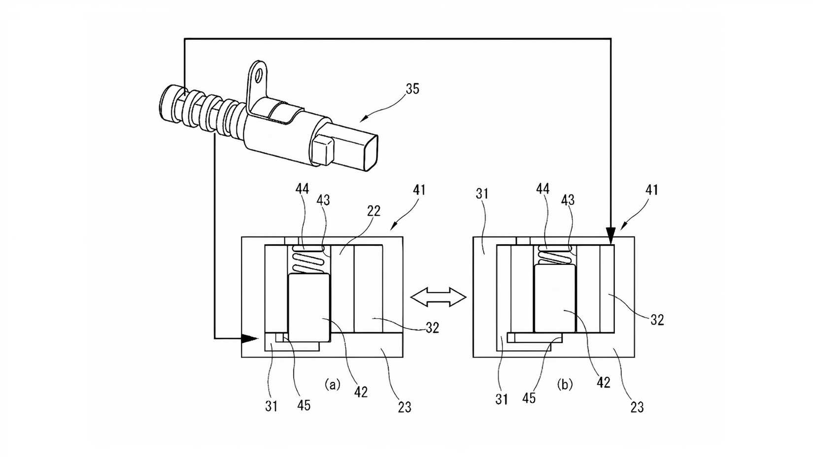 The patent is explicitly for a series parallel hybrid system, but in theory, the locking pin mechanism and advancing/retarding valve timing technology could be applied to a regular parallel hybrid system where the engine drives the car as well as the electric motors. It would produce the same benefits – more efficient exhaust gas recirculation and smoother engine restarts. So how does this extend the lifespan of combustion, you ask?