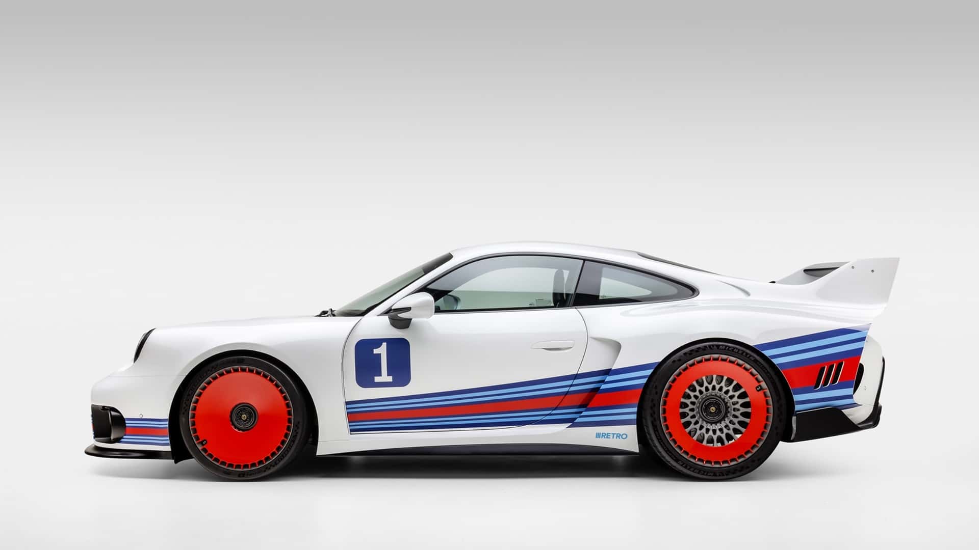 Rezvani Retro is planning a limited run of 50 RR1 vehicles. The base vehicle is the current 992-generation Porsche 911 chassis. The brand describes the bodywork as an homage to the legendary Le Mans-winning Porsche 935 race car from the late 1970s. Vehicle No. 1, built for a local California client, bears the classic Martini livery. Rezvani Retro describes the RR1 as having "timeless looks" with "today's engineering."