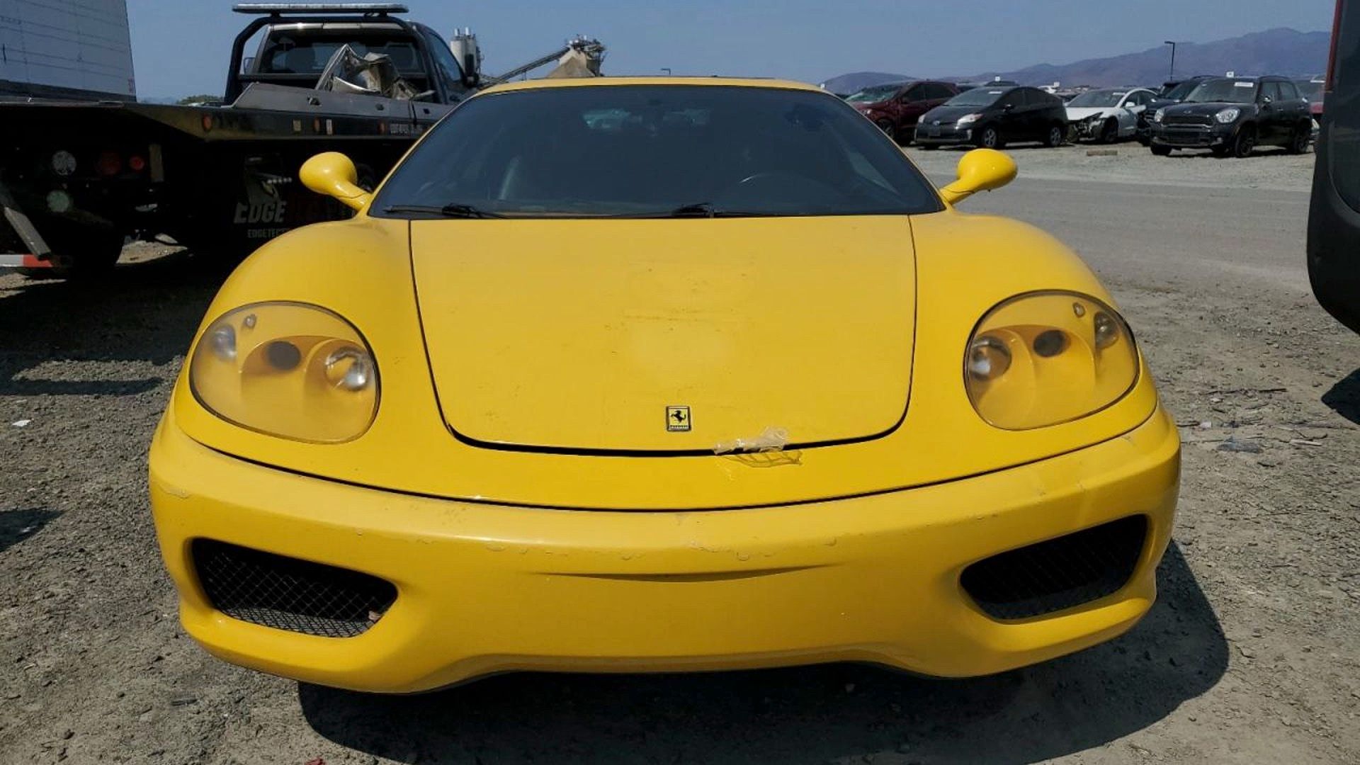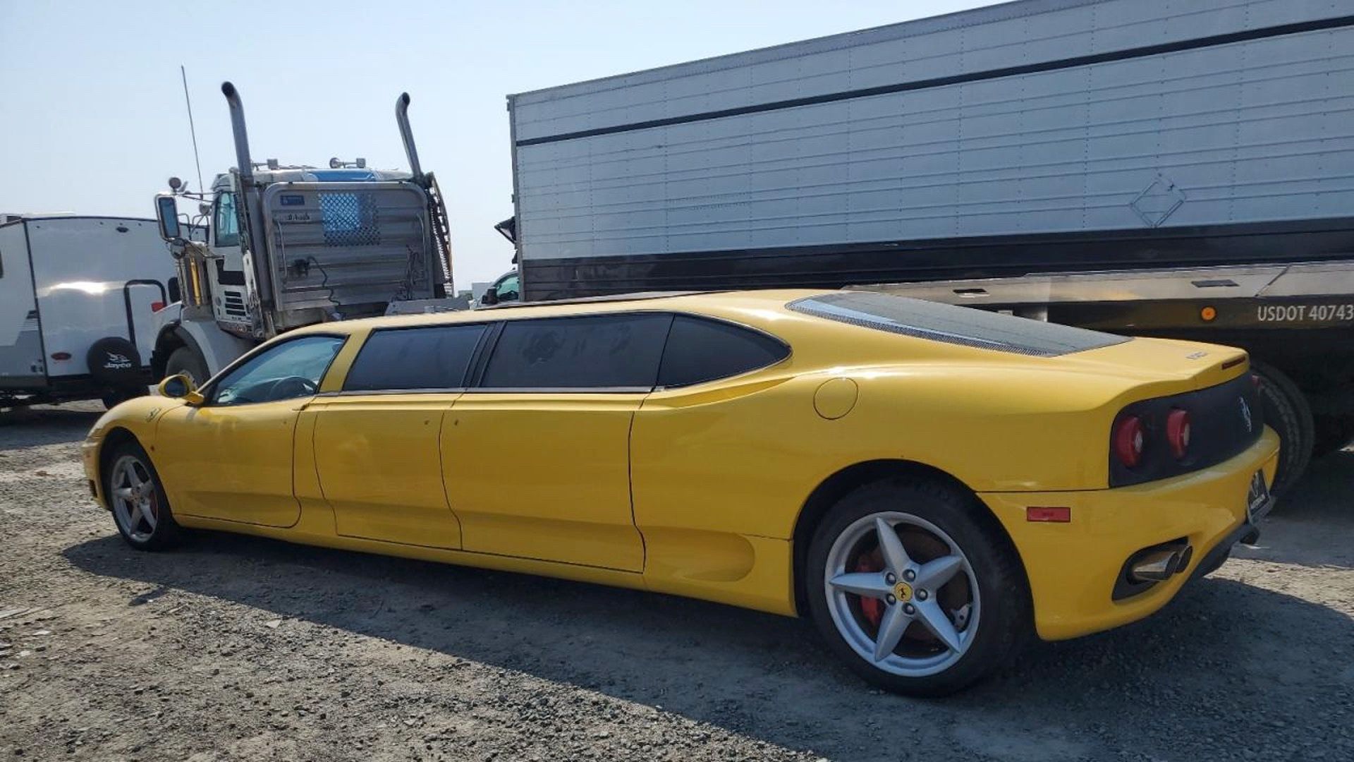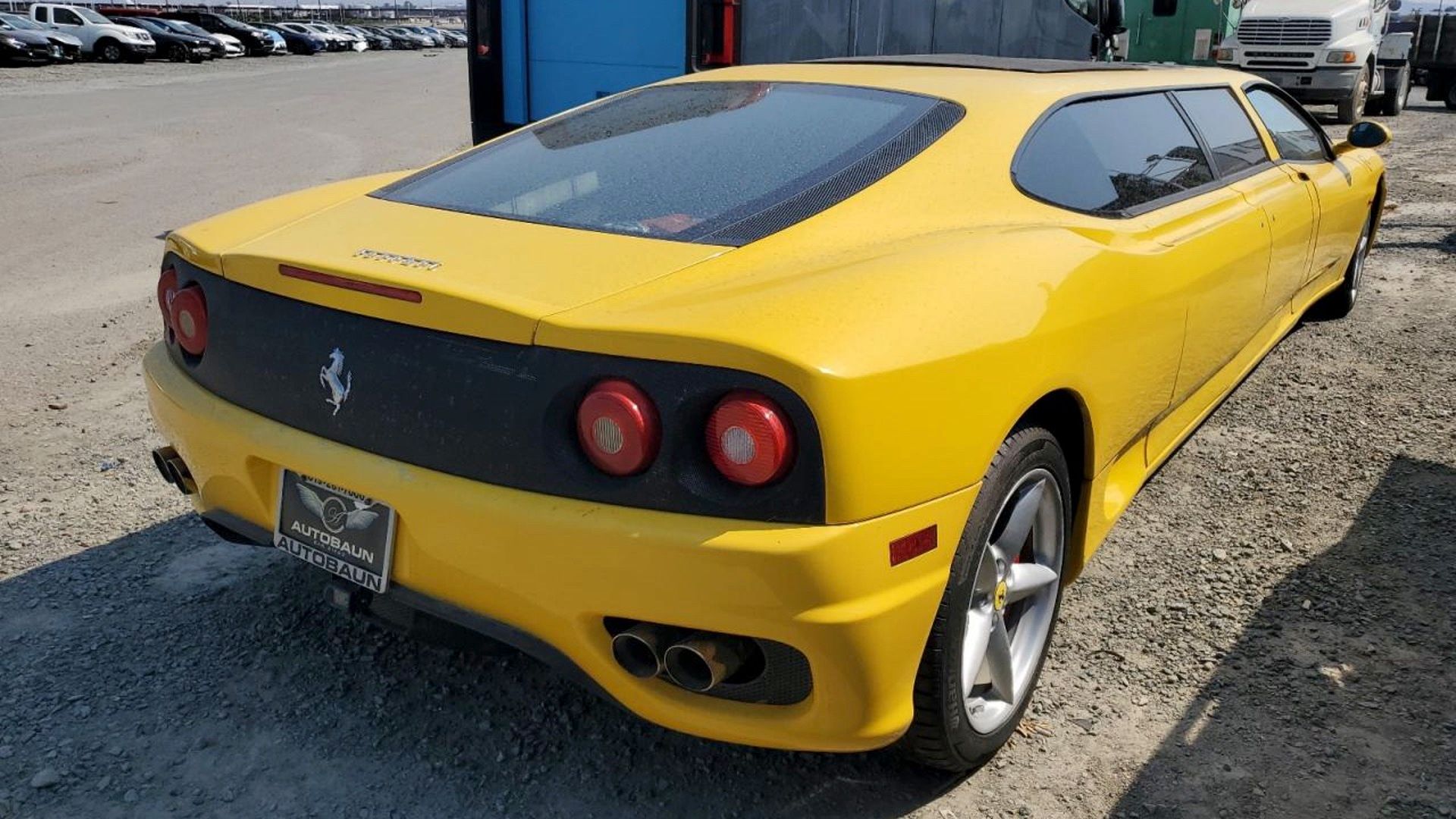 Copart is an auction site for "wholesale and repairable vehicles," but, in reality, it's mostly known for cars written off by insurance companies. RM Sotheby's, or even Hemmings, it is not. Right now, the bright yellow 360 Modena limo is sitting in what looks like a salvage yard in San Diego, California. While it still has its 3.6-liter naturally aspirated V8, it's incredibly unlikely that this Ferrari will ever be properly enjoyed on a back road again. To stretch it into a limo, it has been cut in half, and it's not going to be worth trying to put it back to factory spec.