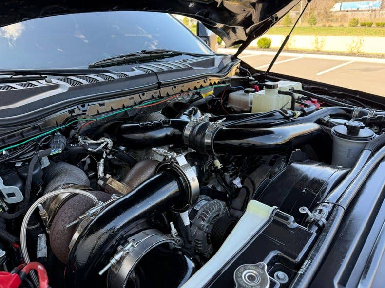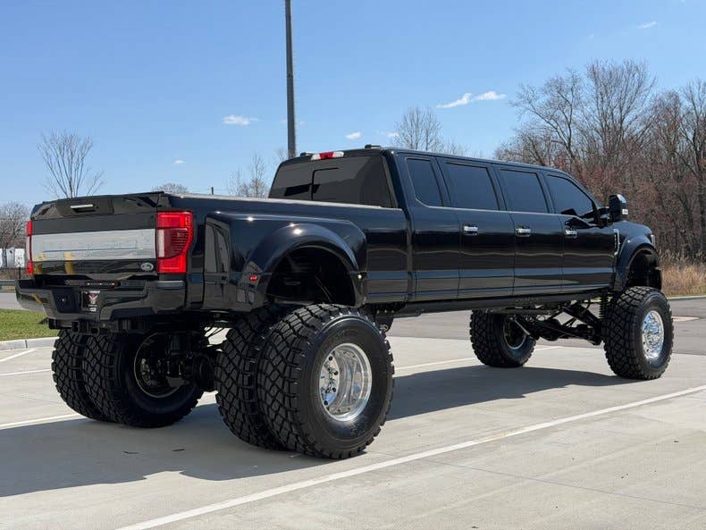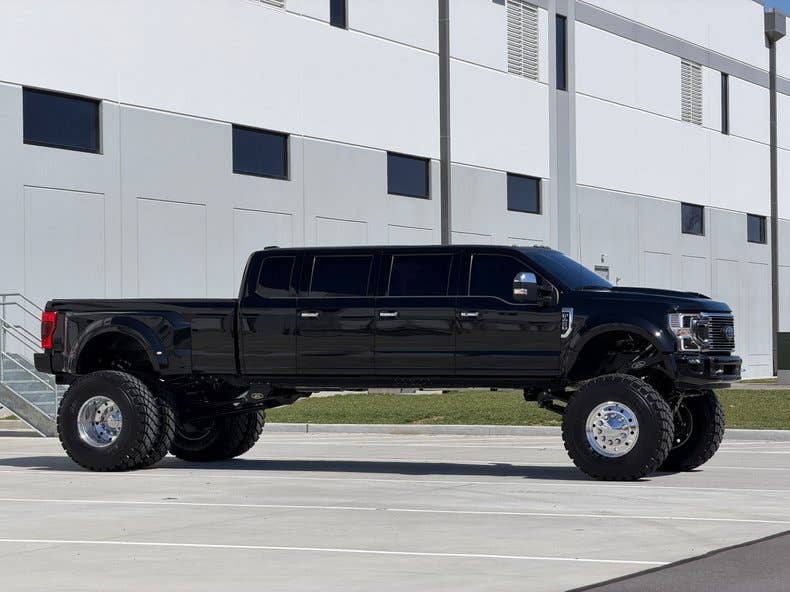 Power is delivered by a massive 6.7-liter V8 Turbo Diesel, making 475 hp and an earth-churning 1,050 ft-lb of torque. The transmission is a 10-speed automatic that drives the 4WD system. As a utilitarian truck, the F-450 has a towing capacity of 24,000 lbs and a payload capacity of 5,320 lbs. The owner then decides to stretch it and goes to an experienced company aptly called Stretch My Truck.